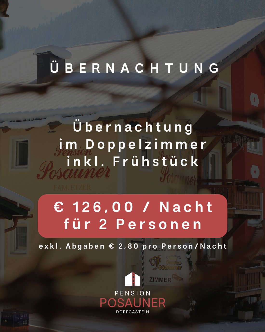 Doppelzimmer für 2 Personen inkl. Frühstück – 126 € pro Nacht (exkl. Abgaben € 2,80 pro Person/Nacht)