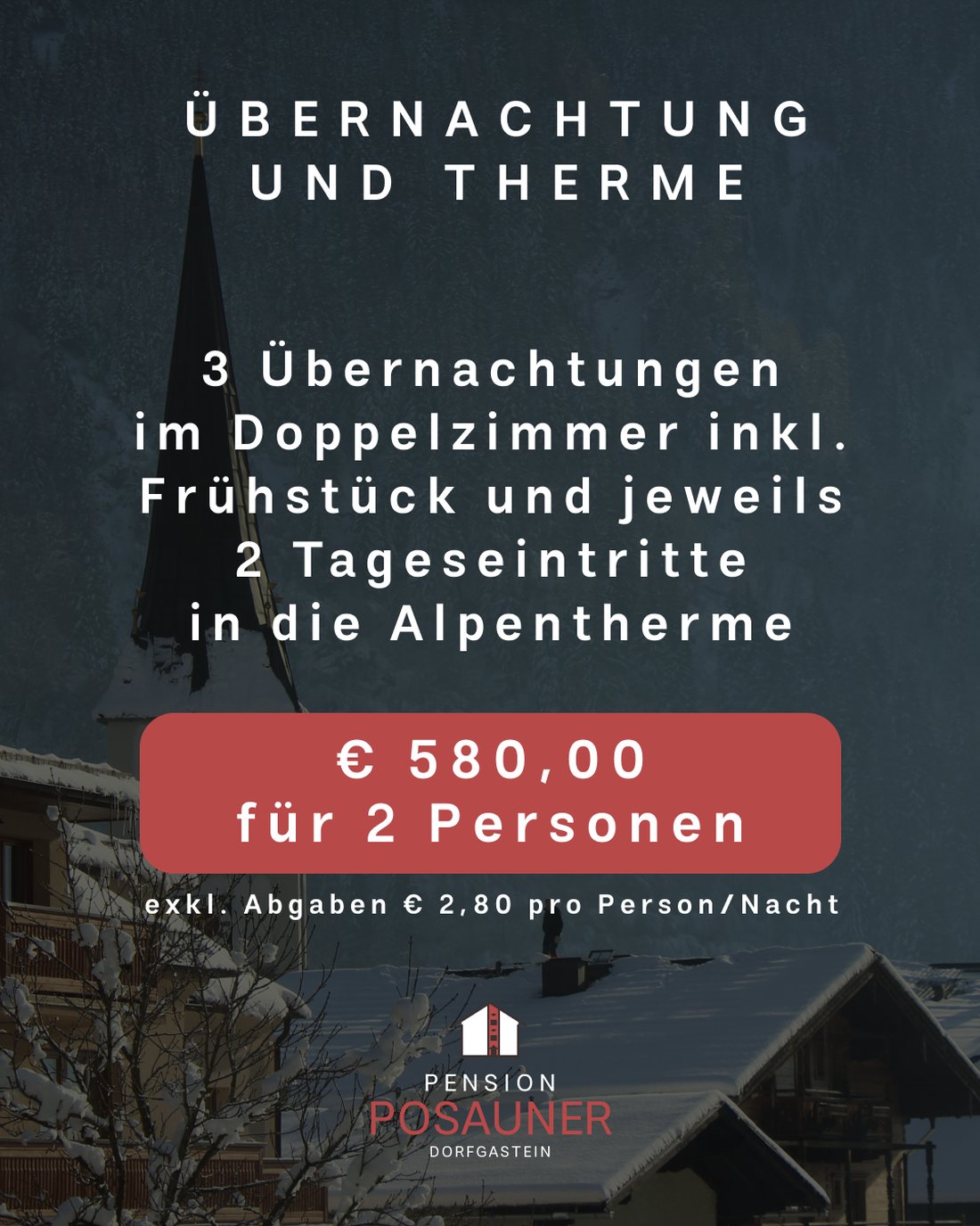 Genieße 3 Übernachtungen im Doppelzimmer inkl. Frühstück bei uns in Dorfgastein inklusive je 2 Tageseintritten in die Alpentherme Gastein.